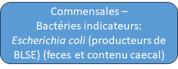 L’apparition de résistances parmi les bactéries issues d’animaux producteurs de denrées alimentaires est également suivie de manière structurelle. Depuis 2011, un monitoring national est effectué, pour le compte de l’AFSCA, sur des animaux vivants (CODA-CERVA) et sur des viandes et des carcasses (WIV-ISP), afin d’évaluer la susceptibilité des germes indicateurs et zoonotiques isolés auprès de différentes espèces animales.