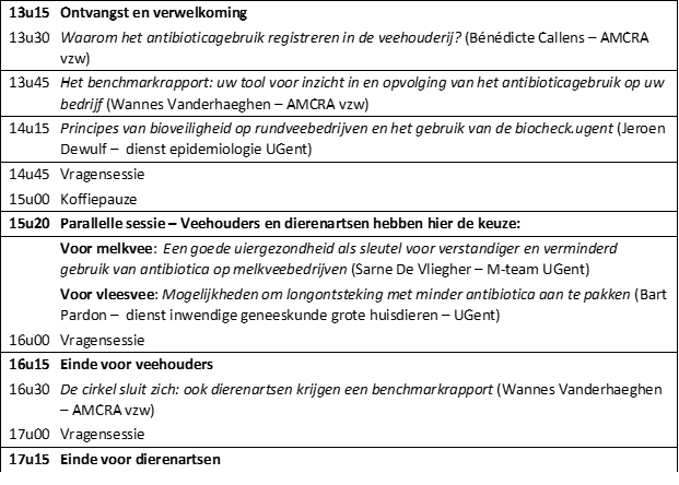 Om veehouders en hun dierenartsen te begeleiden in het gebruik van deze tools en in te zetten op preventie organiseren AMCRA, FAVV, FAGG en het Departement Landbouw en Visserij roadshows.