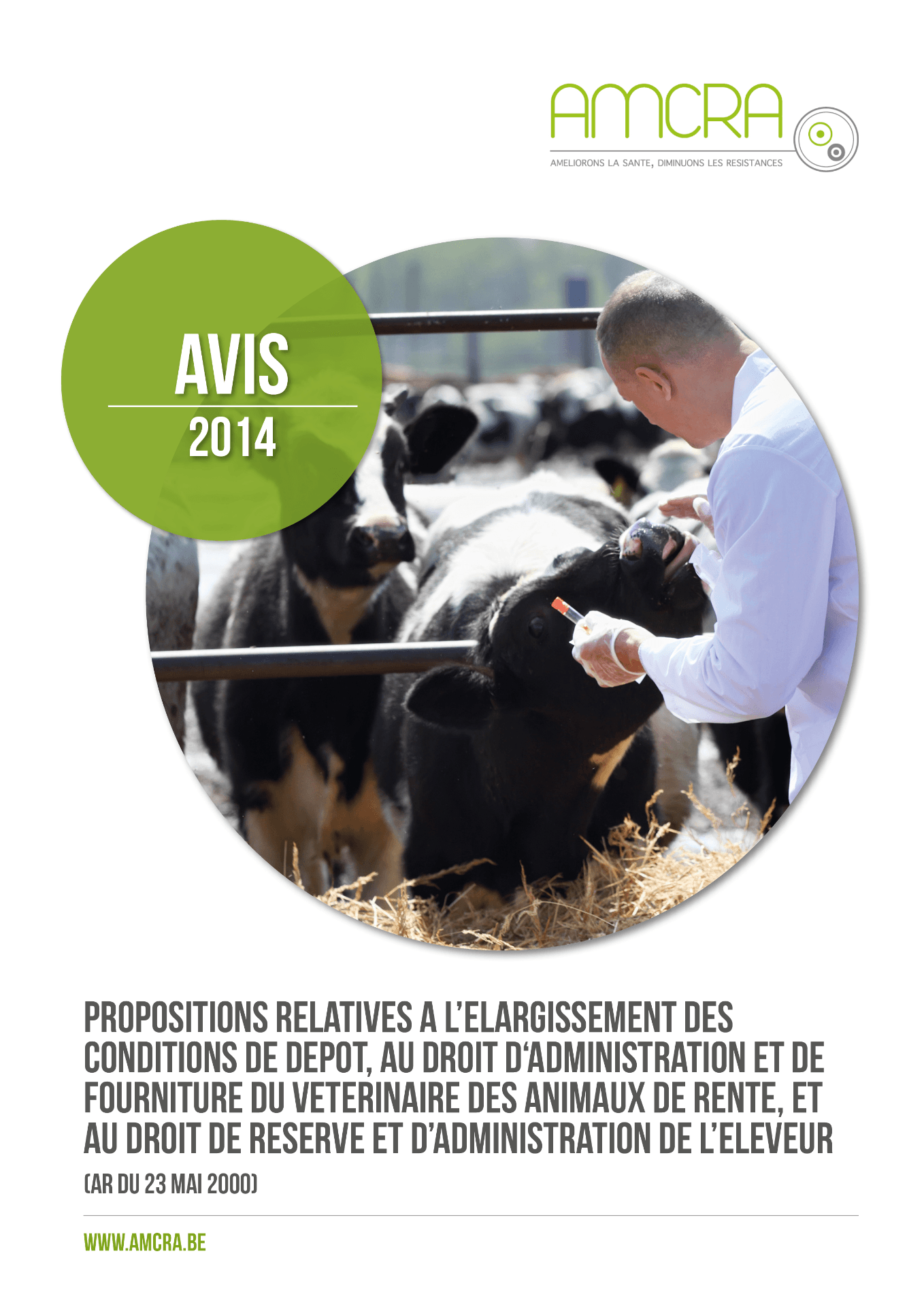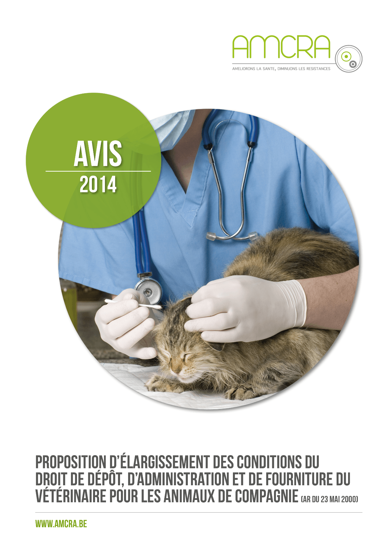 Pour l’année de travail 2013, l’un des objectifs du groupe de pilotage d’AMCRA consistait à formuler des propositions relatives à l’élargissement des conditions reprises aux chapitres II, III et IV de l’AR du 23 mai 2000. Ces chapitres traitent des conditions d’acquisition, de dépôt, de fourniture, d’administration et de prescription de médicaments par le vétérinaire, et de la possession et l’administration de médicaments par le responsable des animaux. Dans cette optique, AMCRA a composé deux groupes de travail : l’un chargé de rédiger un avis pour le secteur des animaux de production et un autre qui s’est penché sur la réserve de médicaments du vétérinaire pour animaux de compagnie.
