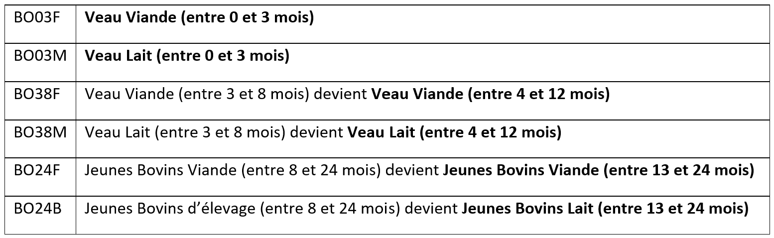 La collecte de données pour les veaux de boucherie reste inchangée.