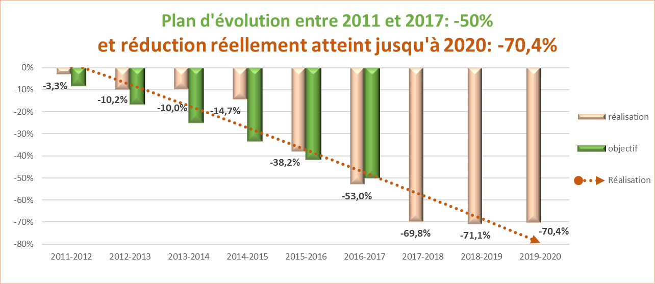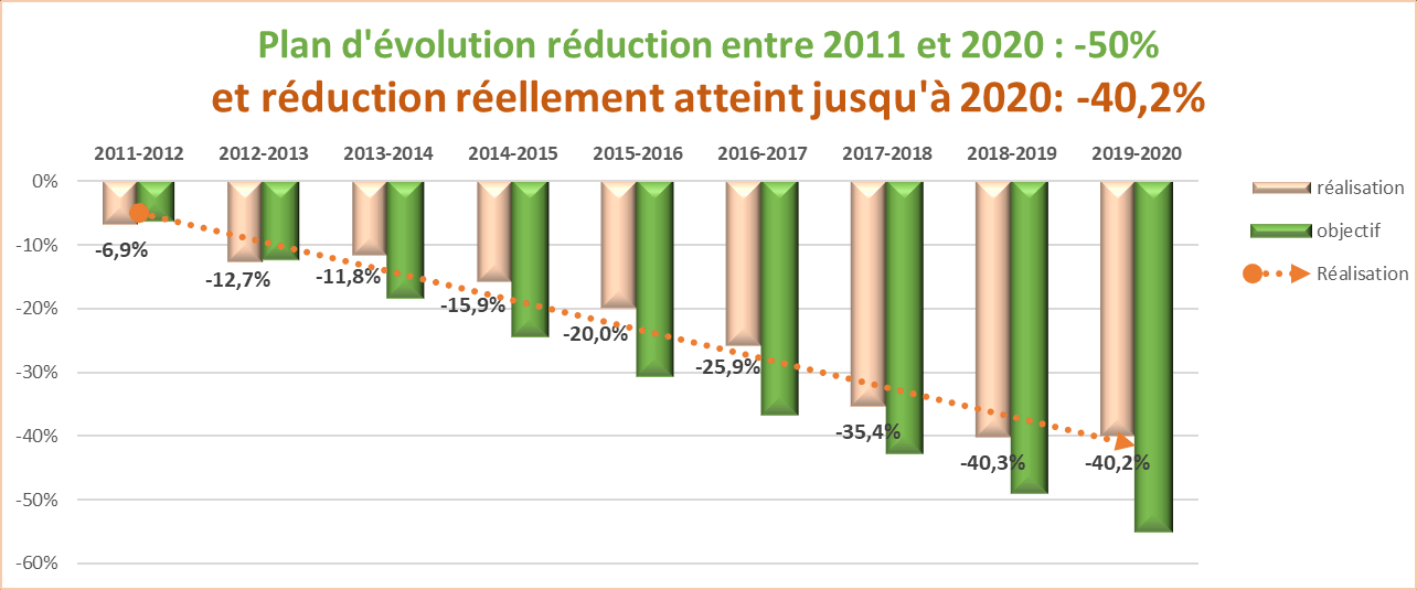 Le Plan 2020 AMCRA fixe 3 objectifs de réduction en prenant l’année 2011 comme année de référence.