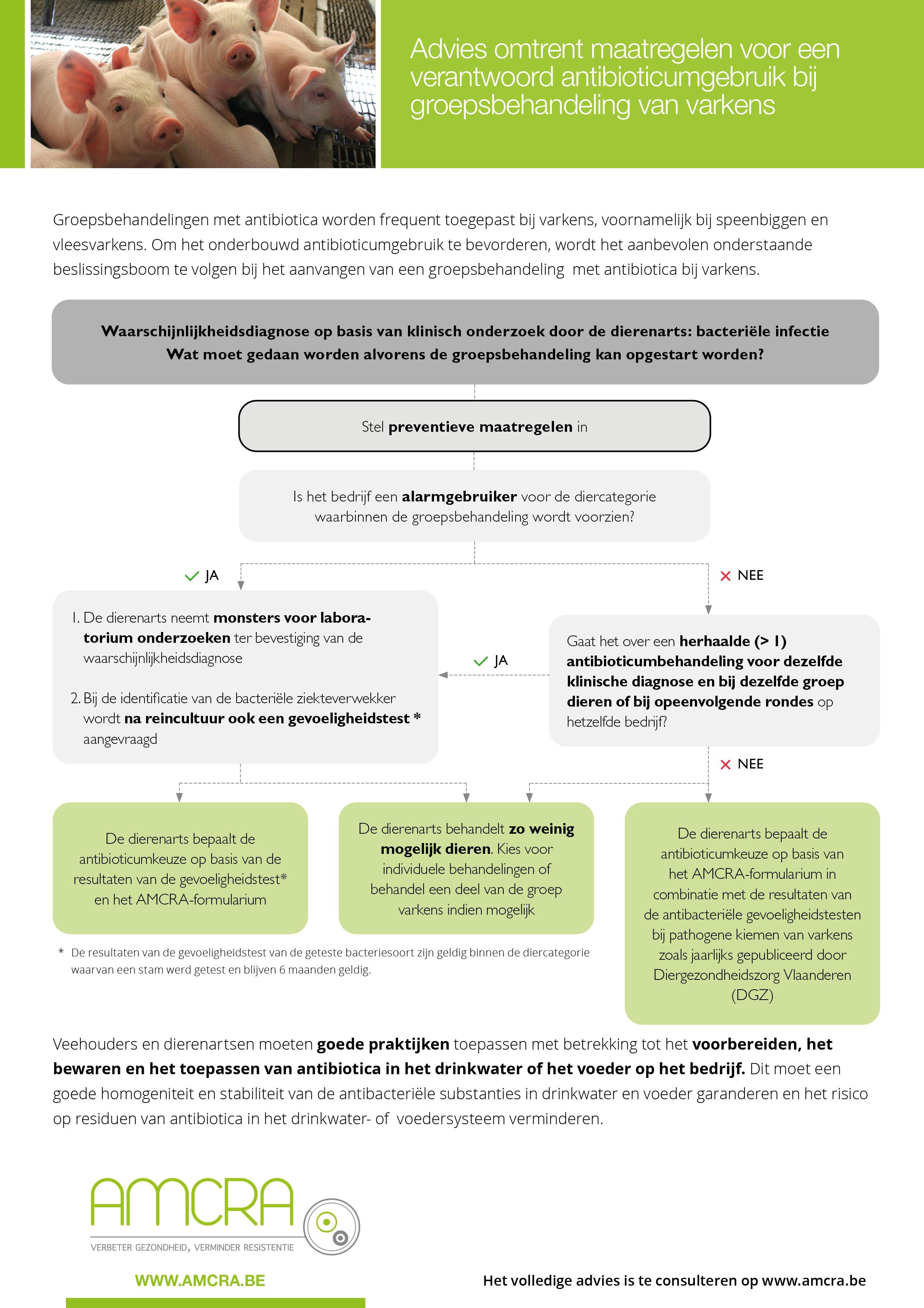In overleg met de werkgroepen van AMCRA werd voor elke diergroep varkens, pluim- en rundvee een gids goed gebruik van antibiotica ontwikkeld. Deze gids omvat algemene aanbevelingen omtrent het verantwoord gebruik van antibiotica en is tevens bestemd voor zowel de dierenarts als de veehouder.