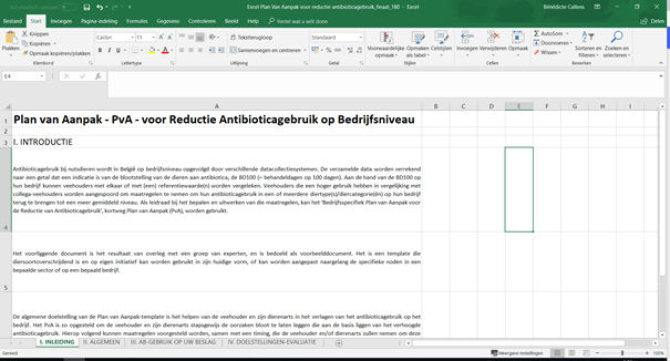 In overleg met een groep experten werd een voorbeelddocument ontwikkeld voor een Plan van Aanpak. Het is een template die diersoortoverschrijdend is en op eigen initiatief kan worden gebruikt in zijn huidige vorm, of kan worden aangepast naargelang de specifieke noden in een bepaalde sector of op een bepaald bedrijf.