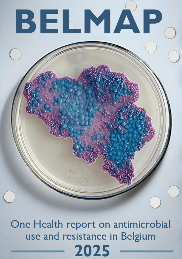 In 2021 verscheen voor het eerst het BELMAP-rapport, het Belgische "One Health"-rapport over antibioticaresistentie. Dit rapport heeft als doel de resultaten en trends van de bestaande monitoringprogramma’s bij mensen, voedselproducerende dieren, de voedselketen en het leefmilieu samen te vatten, mogelijke lacunes te identificeren en algemene aanbevelingen te formuleren om de monitoring te verbeteren.